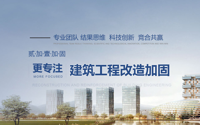 河南貳加壹改造加固工程有限公司是專業從事建筑工程改造加固技術研究及相關產品開發的 產業的公司,特聘數名教授及一級注冊結構工程師作為常年顧問,提供專業的加固咨詢、加固方案設計、工程施工服務。公司擁有建筑特種專業工程專業承包資質(結構補強),建筑鋼結構工程、建筑防水工程、防腐保溫工程、建筑裝飾裝修等多項施工資質,可承擔建筑結構、市政、路橋、水利、礦山、鋼結構等工程的改造加固、結構補強。